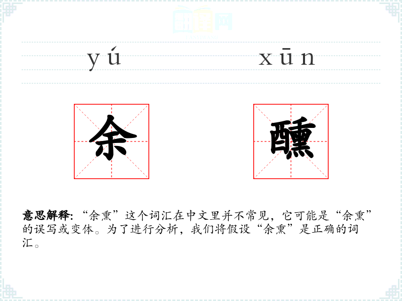 “余熏”这个词汇在中文里并不常见,它可能是“余熏”的误写或变体。为了进行分析,我们将假设“余熏”是正确的词汇。