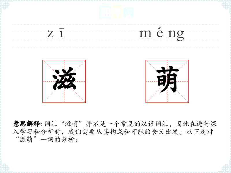 词汇“滋萌”并不是一个常见的汉语词汇,因此在进行深入学习和分析时,我们需要从其构成和可能的含义出发。以下是对“滋萌”一词的分析: