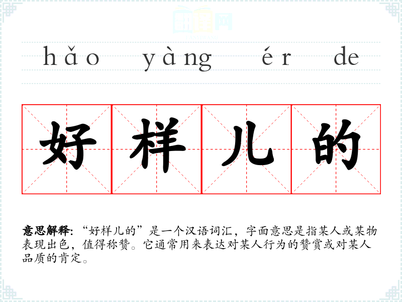 - 口语:在日常对话中,这个词汇常用于表扬朋友或家人的某种行为,如“你这次考试考得真好样儿的!”