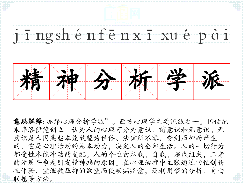 "精神分析学派"的意思解释、精神分析学派是什么意思由翻译网汉语词典查词提供。