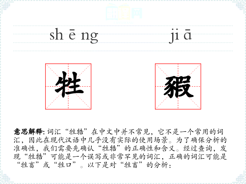 词汇“牲牿”在中文中并不常见,它不是一个常用的词汇,因此在现代汉语中几乎没有实际的使用场景。为了确保分析的准确性,我们需要先确认“牲牿”的正确性和含义。经过查询,发现“牲牿”可能是一个误写或非常罕见的词汇,正确的词汇可能是“牲畜”或“牲口”。以下是对“牲畜”的分析:
