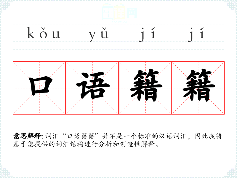 词汇“口语籍籍”并不是一个标准的汉语词汇,因此我将基于您提供的词汇结构进行分析和创造性解释。