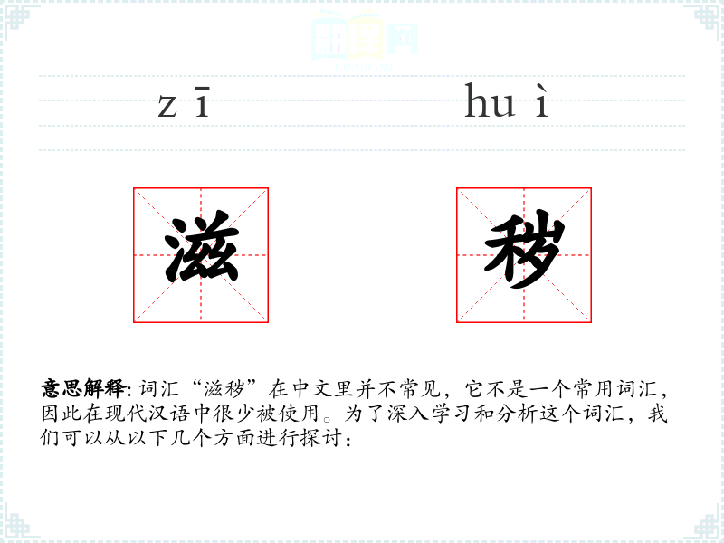 词汇“滋秽”在中文里并不常见,它不是一个常用词汇,因此在现代汉语中很少被使用。为了深入学*和分析这个词汇,我们可以从以下几个方面进行探讨: