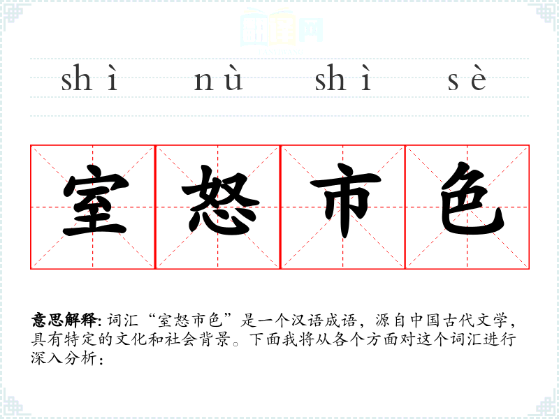 词汇“室怒市色”是一个汉语成语,源自**古代文学,具有特定的文化和社会背景。下面我将从各个方面对这个词汇进行深入分析: