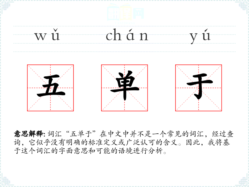 词汇“五单于”在中文中并不是一个常见的词汇,经过查询,它似乎没有明确的标准定义或广泛认可的含义。因此,我将基于这个词汇的字面意思和可能的语境进行分析。