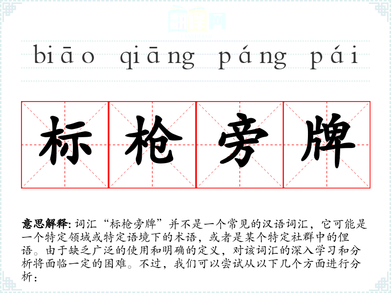 综上所述,由于“标枪旁牌”不是一个标准或常见的词汇,对其进行深入学*和分析存在较大的困难。如果该词汇出现在特定的语境或领域中,建议进一步查阅相关资料或咨询该领域的专家以获得更准确的信息。