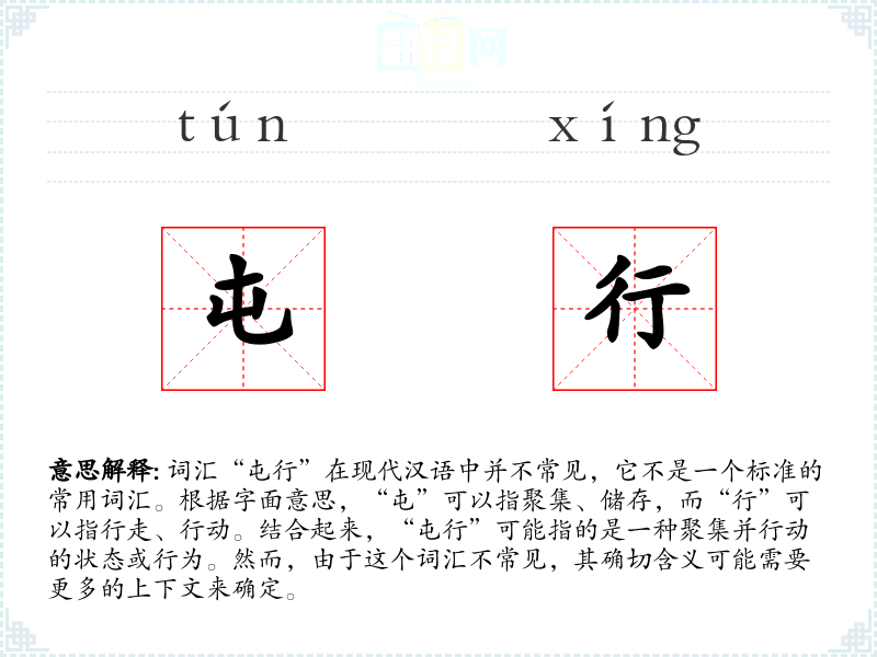 在特定的文化或社会背景中,“屯行”可能被用来描述一种集体行动的方式,例如在军事、农业或其他需要集体协作的活动中。