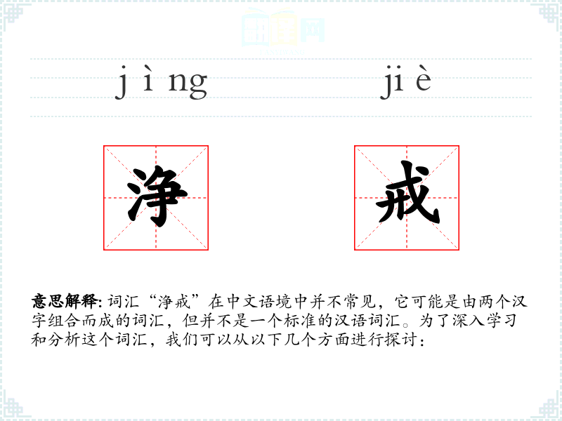 通过对“浄戒”这个词汇的分析,我们可以认识到语言中存在一些非标准的组合词汇,它们可能在特定的语境或文化中有特定的意义。在语言学*和表达中,了解词汇的准确含义和用法是非常重要的。