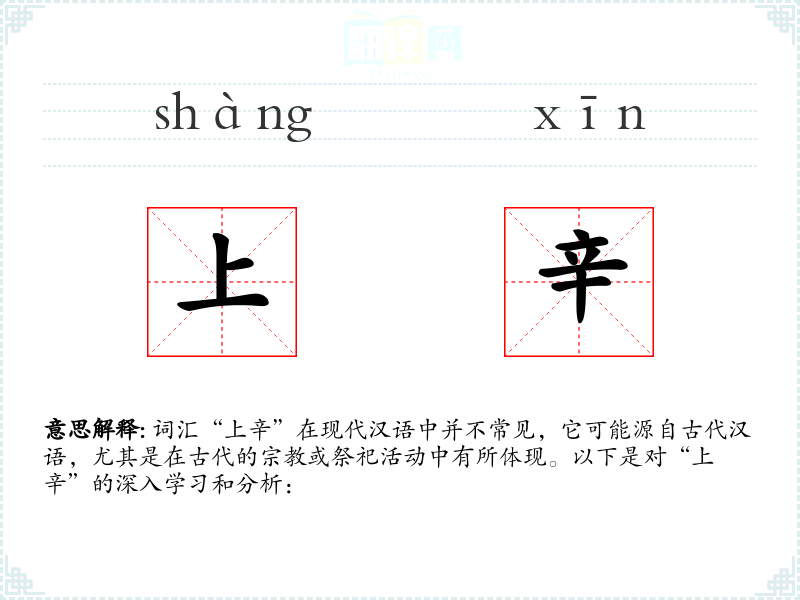 词汇“上辛”在现代汉语中并不常见,它可能源自古代汉语,尤其是在古代的*或祭祀活动中有所体现。以下是对“上辛”的深入学和分析: