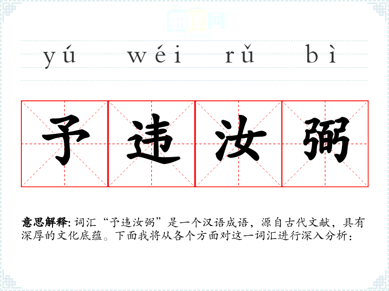 词汇“予违汝弼”是一个汉语成语,源自古代文献,具有深厚的文化底蕴。下面我将从各个方面对这一词汇进行深入分析: