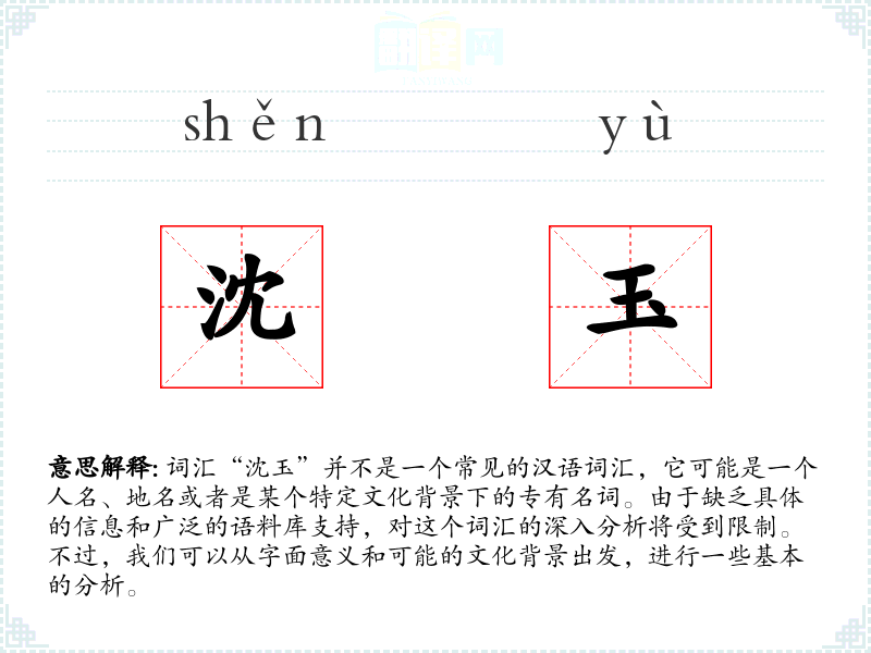 由于“沈玉”不是一个常见的词汇,以上的分析更多是基于假设和可能性的推测。如果能够提供更多的上下文信息,分析将更加准确和深入。