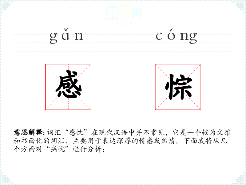 词汇“感忱”在现代汉语中并不常见,它是一个较为文雅和书面化的词汇,主要用于表达深厚的情感或热情。下面我将从几个方面对“感忱”进行分析: