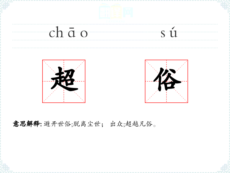 避开世俗;脱离尘世; 出众;超越凡俗。