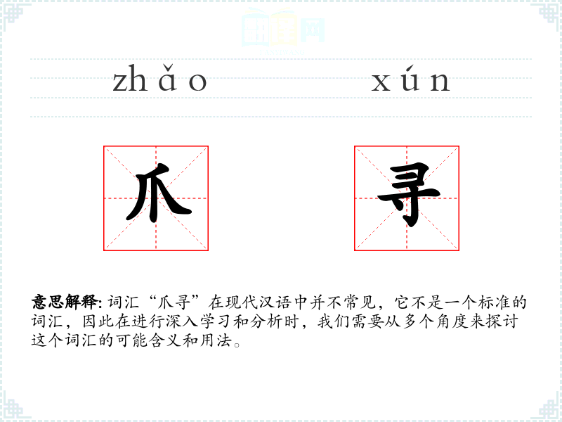 "爪寻"的意思解释、爪寻是什么意思由翻译网汉语词典查词提供。