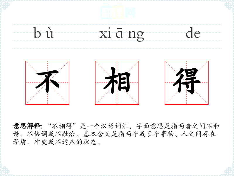 在英语中,“不相得”可以对应为“incompatible”或“not in harmony”,这些词汇在西方文化中也用来描述不协调或不和谐的状态。