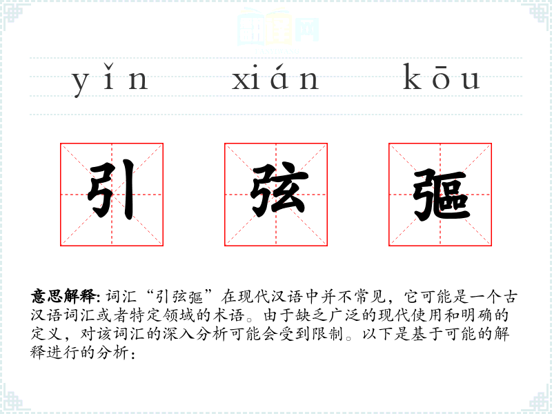词汇“引弦彄”在现代汉语中并不常见,它可能是一个古汉语词汇或者特定领域的术语。由于缺乏广泛的现代使用和明确的定义,对该词汇的深入分析可能会受到限制。以下是基于可能的解释进行的分析: