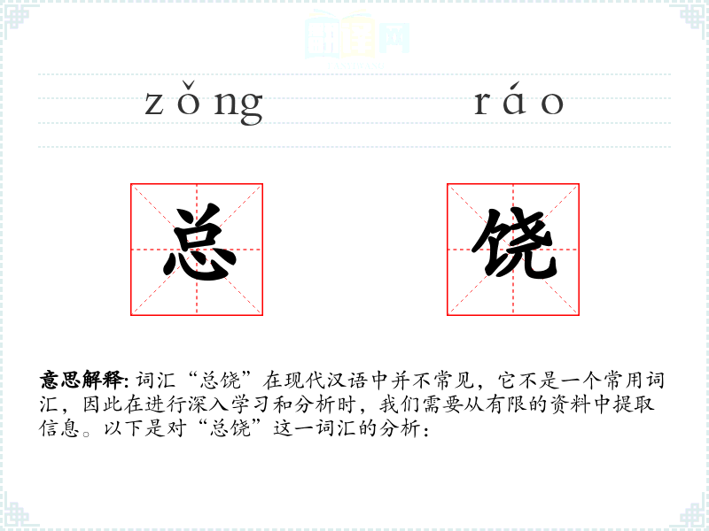 词汇“总饶”在现代汉语中并不常见,它不是一个常用词汇,因此在进行深入学习和分析时,我们需要从有限的资料中提取信息。以下是对“总饶”这一词汇的分析: