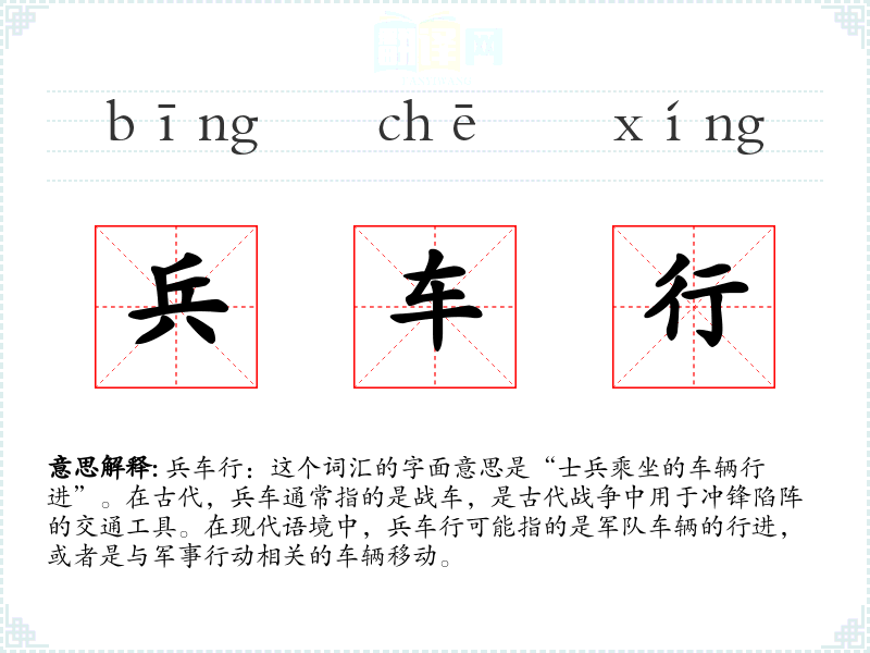 兵车行作为一个词汇,不仅承载了历史和文化的内涵,也在现代语境中有着实际的应用。了解和掌握这个词汇,有助于更深入地理解军事、历史和文化,并在语言表达中更加丰富和准确。