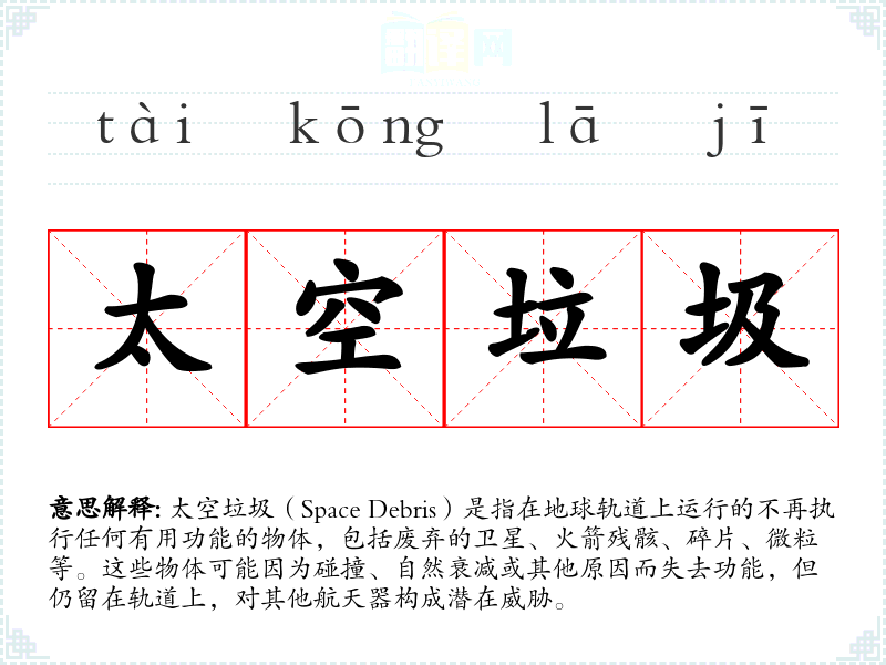 "太空垃圾"的意思解释、太空垃圾是什么意思由翻译网汉语词典查词提供。