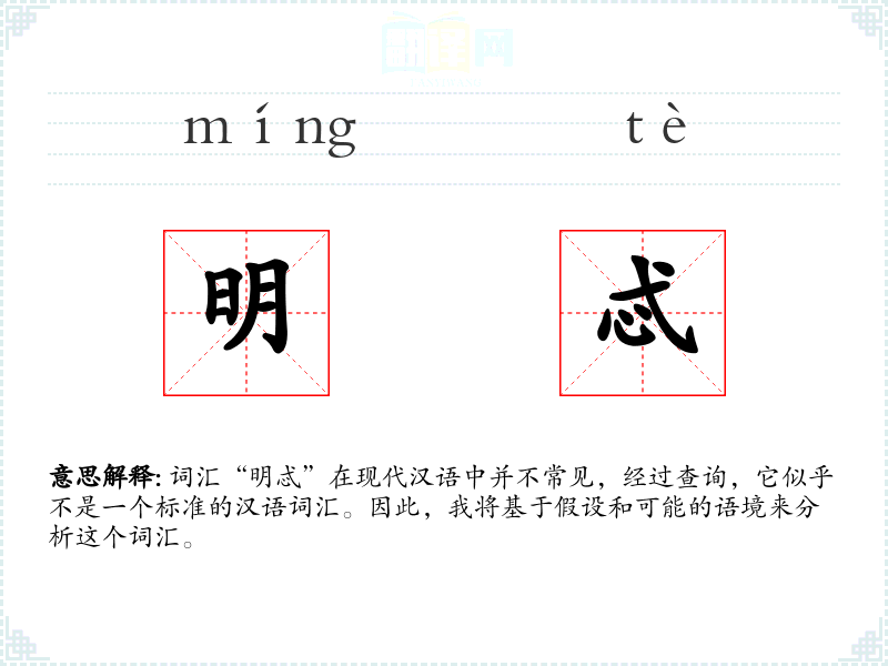 词汇“明忒”在现代汉语中并不常见,经过查询,它似乎不是一个标准的汉语词汇。因此,我将基于假设和可能的语境来分析这个词汇。