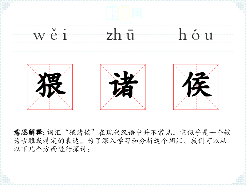词汇“猥诸侯”在现代汉语中并不常见,它似乎是一个较为古雅或特定的表达。为了深入学*和分析这个词汇,我们可以从以下几个方面进行探讨: