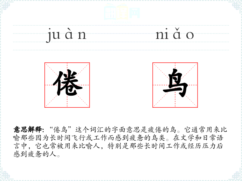 - 同义词:疲惫的鸟、劳累的鸟、疲乏的鸟