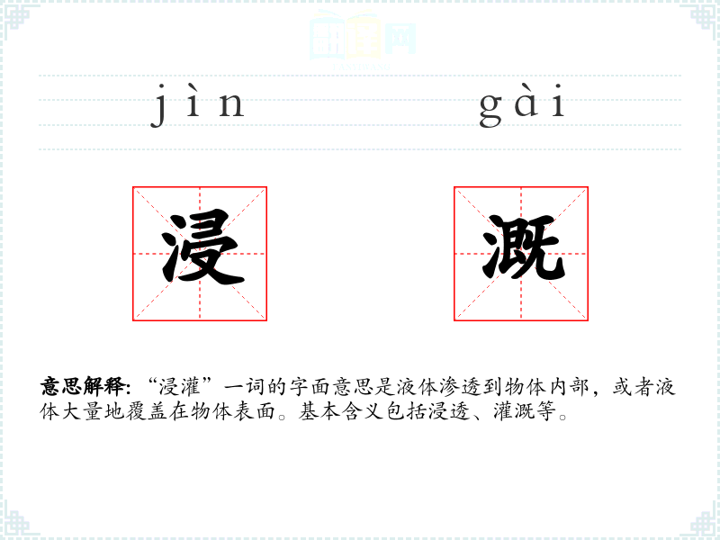 “浸灌”由“浸”和“灌”两个字组成,“浸”字古已有之,意为浸泡;“灌”字原指浇灌,后引申为注入、充满。两者结合,形成了现在的含义。