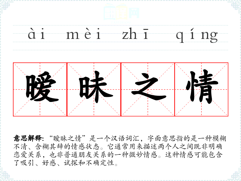 “暧昧之情”是一个富有表现力的词汇,它不仅描述了一种特定的情感状态,还反映了人际关系中的复杂性和不确定性。在语言学习和表达中,理解和运用这个词汇可以帮助我们更准确地传达情感和意图。