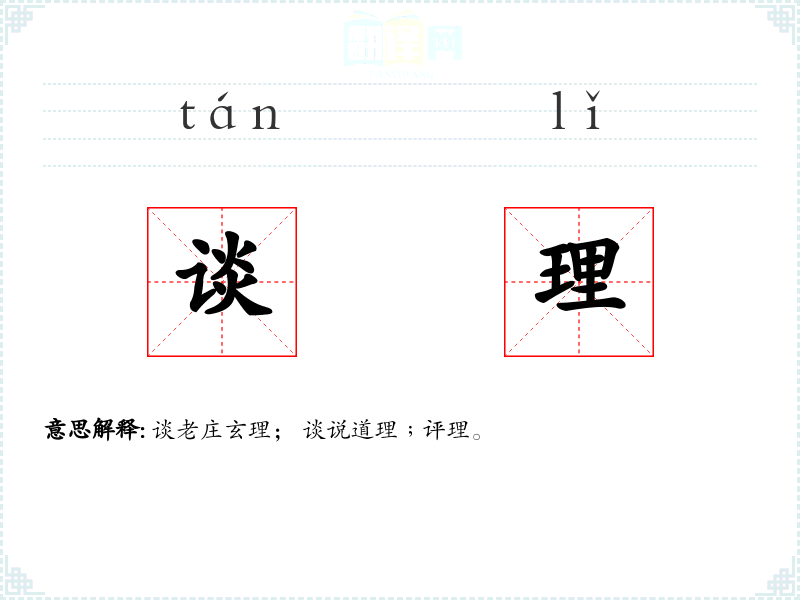 谈老庄玄理; 谈说道理﹔评理。