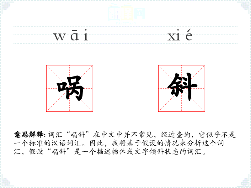 "㖞斜"的意思解释、㖞斜是什么意思由翻译网汉语词典查词提供。