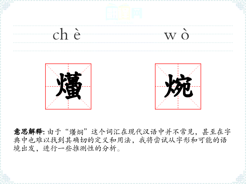 由于“爡烔”这个词汇在现代汉语中并不常见,甚至在字典中也难以找到其确切的定义和用法,我将尝试从字形和可能的语境出发,进行一些推测性的分析。