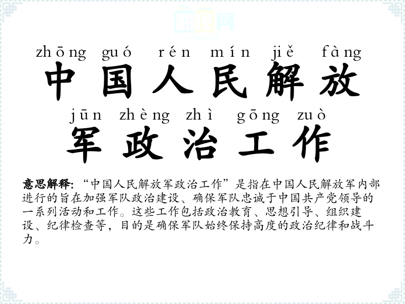 "中国人民解放军政治工作"的意思解释、中国人民解放军政治工作是什么意思由翻译网汉语词典查词提供。