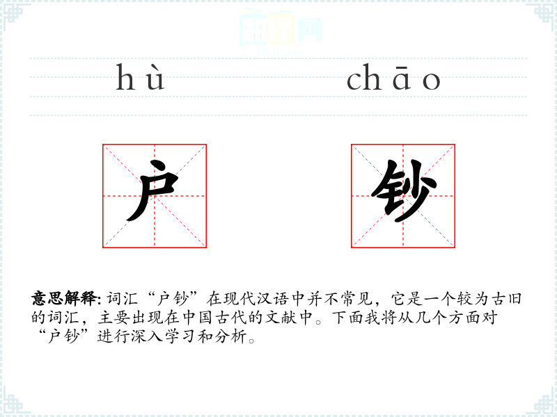 词汇“户钞”在现代汉语中并不常见,它是一个较为古旧的词汇,主要出现在*古代的文献中。下面我将从几个方面对“户钞”进行深入学和分析。