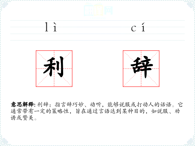 在英语中,与“利辞”相对应的词汇可能是“eloquence”或“persuasive speech”,它们都强调了言辞的力量和说服力。