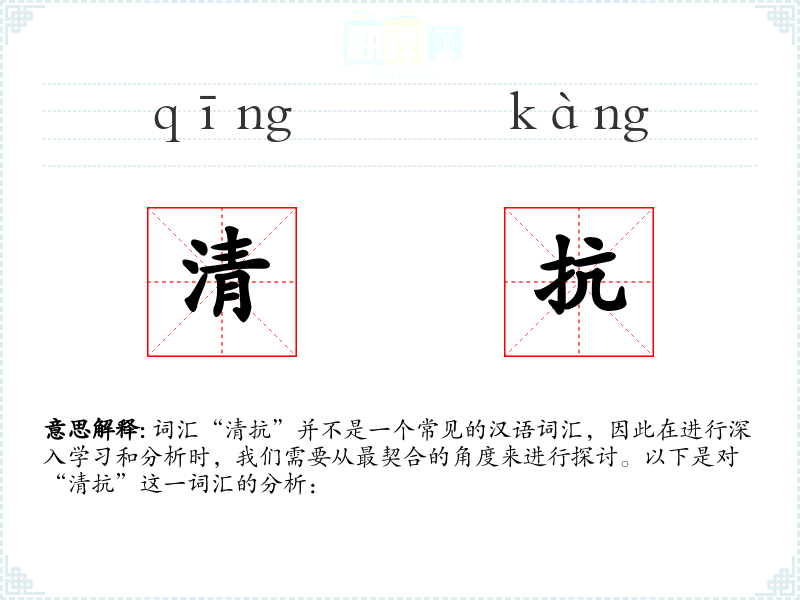 词汇“清抗”并不是一个常见的汉语词汇,因此在进行深入学习和分析时,我们需要从最契合的角度来进行探讨。以下是对“清抗”这一词汇的分析: