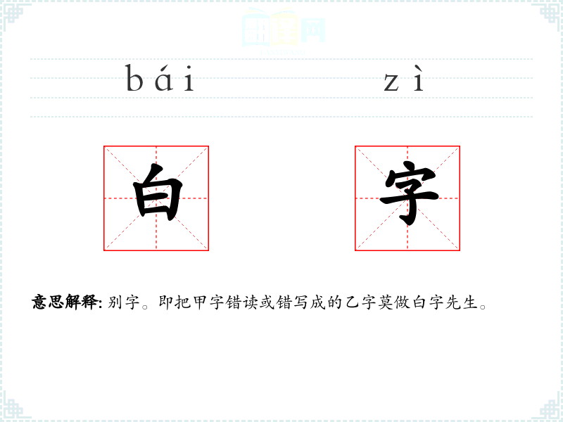 别字。即把甲字错读或错写成的乙字莫做白字先生。