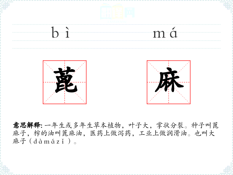 蓖麻的分字解释
