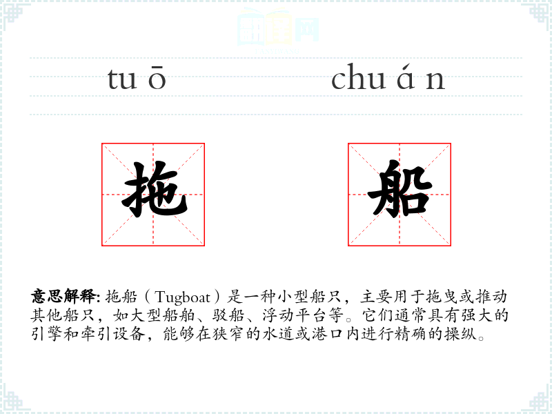 - 反义词:无直接反义词,但可以考虑“被拖船”作为相对概念。