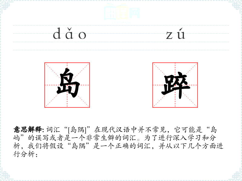 词汇“[岛隅]”在现代汉语中并不常见,它可能是“岛屿”的误写或者是一个非常生僻的词汇。为了进行深入学习和分析,我们将假设“岛隅”是一个正确的词汇,并从以下几个方面进行分析: