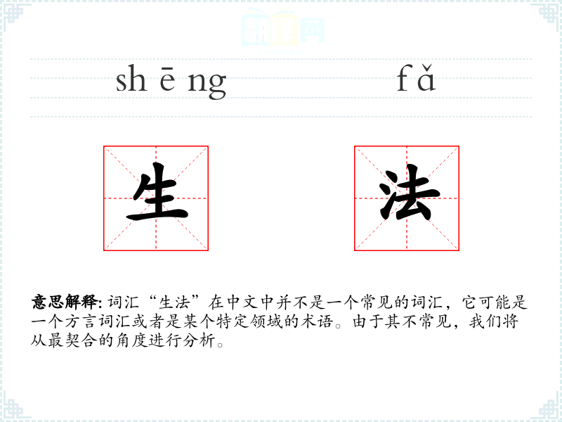 由于“生法”不是一个常用词汇,它在不同语言或文化中的对应词汇及其使用情况可能不明确。