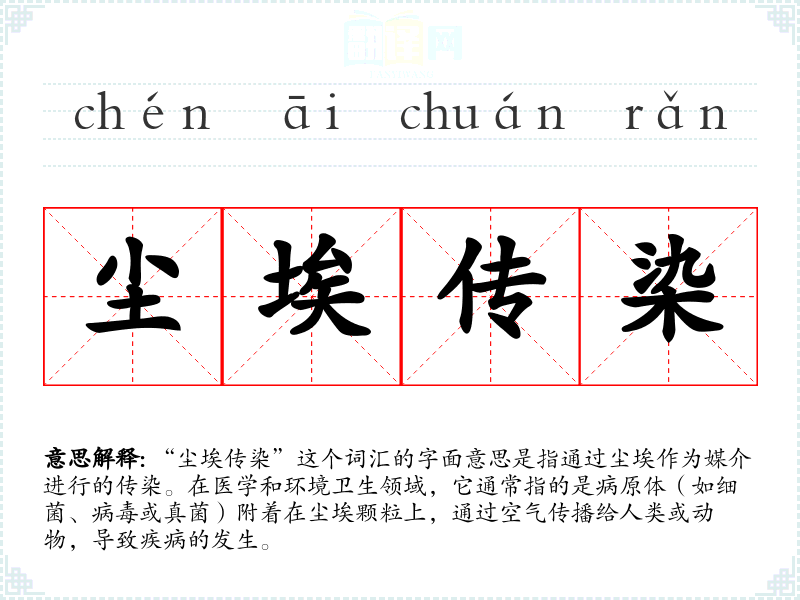 - 专业领域:在公共卫生和环境科学中,“尘埃传染”是一个专业术语,用于描述特定的疾病传播机制。