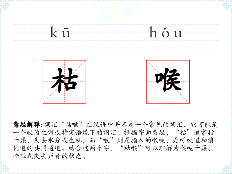 "枯喉"的意思解释、枯喉是什么意思由翻译网汉语词典查词提供。