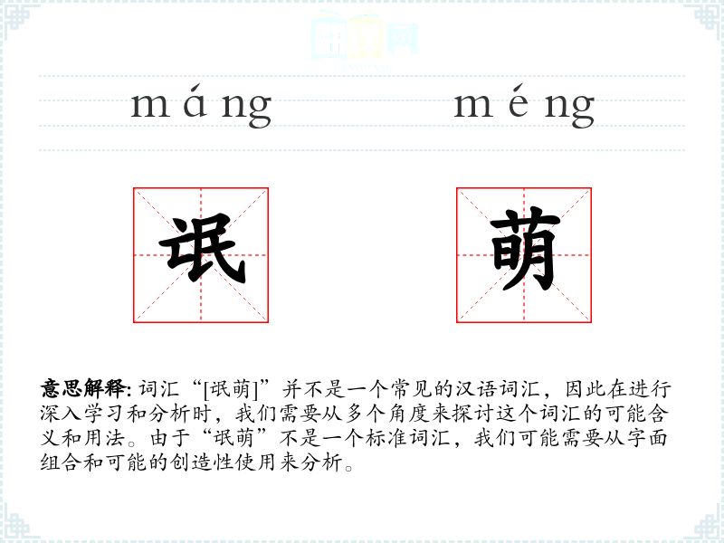 词汇“[氓萌]”并不是一个常见的汉语词汇,因此在进行深入学习和分析时,我们需要从多个角度来探讨这个词汇的可能含义和用法。由于“氓萌”不是一个标准词汇,我们可能需要从字面组合和可能的创造性使用来分析。
