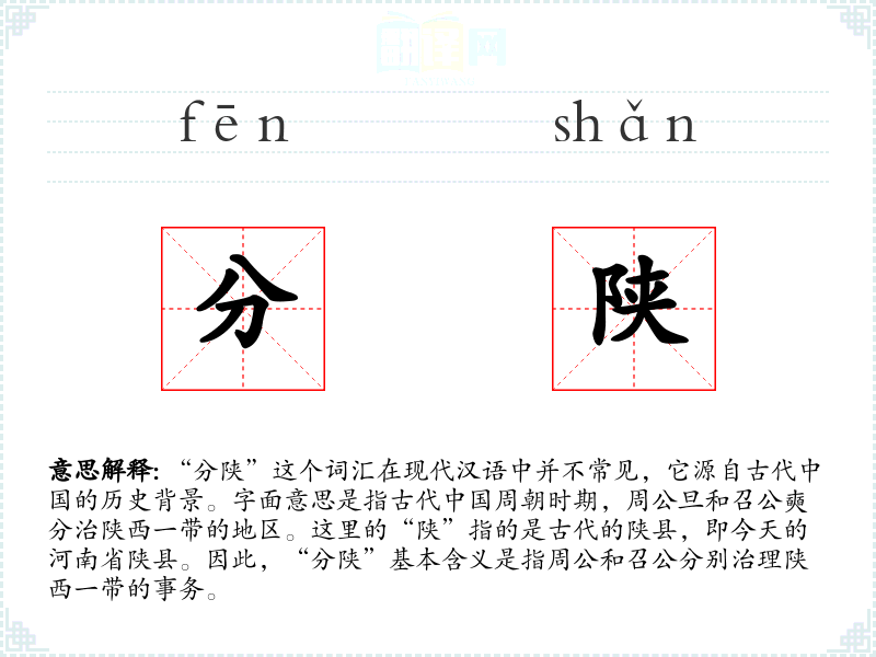“分陕”是一个具有特定历史和文化背景的词汇,虽然在现代汉语中使用不多,但对于理解*古代政治制度和文化传统具有重要意义。在学历史或进行相关研究时,掌握这个词汇的含义和背景是非常有益的。