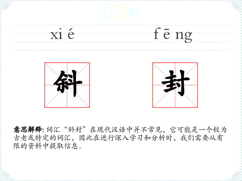 词汇“斜封”在现代汉语中并不常见,它可能是一个较为古老或特定的词汇,因此在进行深入学*和分析时,我们需要从有限的资料中提取信息。