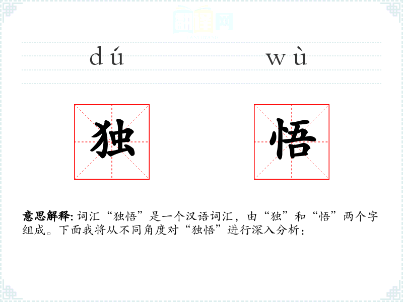 - 专业领域:在哲学、心理学等领域,“独悟”可能指个体通过内省和反思达到的自我认知。