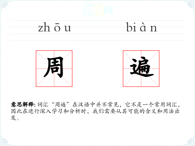 词汇“周遍”在汉语中并不常见,它不是一个常用词汇,因此在进行深入学习和分析时,我们需要从其可能的含义和用法出发。