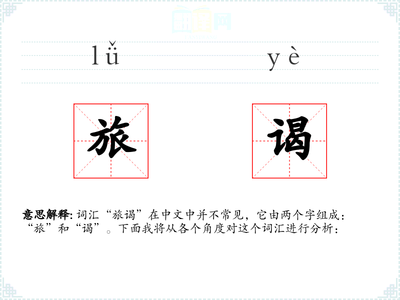 - “旅谒”这个词汇虽然在现代汉语中不常用,但它体现了古代文化中的一种礼仪和尊敬,对于理解古代社会和文化有一定的价值。