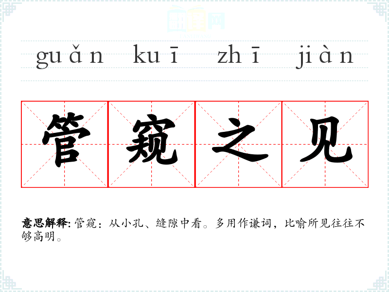 管窥:从小孔、缝隙中看。多用作谦词,比喻所见往往不够高明。