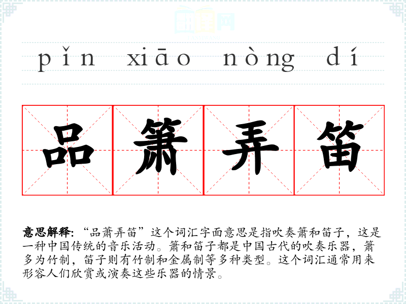 “品萧弄笛”这个词汇源自古代对音乐活动的描述,随着时间的推移,它逐渐成为了一个特定的文化符号,代表着传统音乐和文人雅趣。